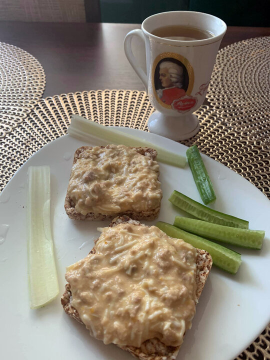 Мой завтрак сегодня- паштет из печени трески.