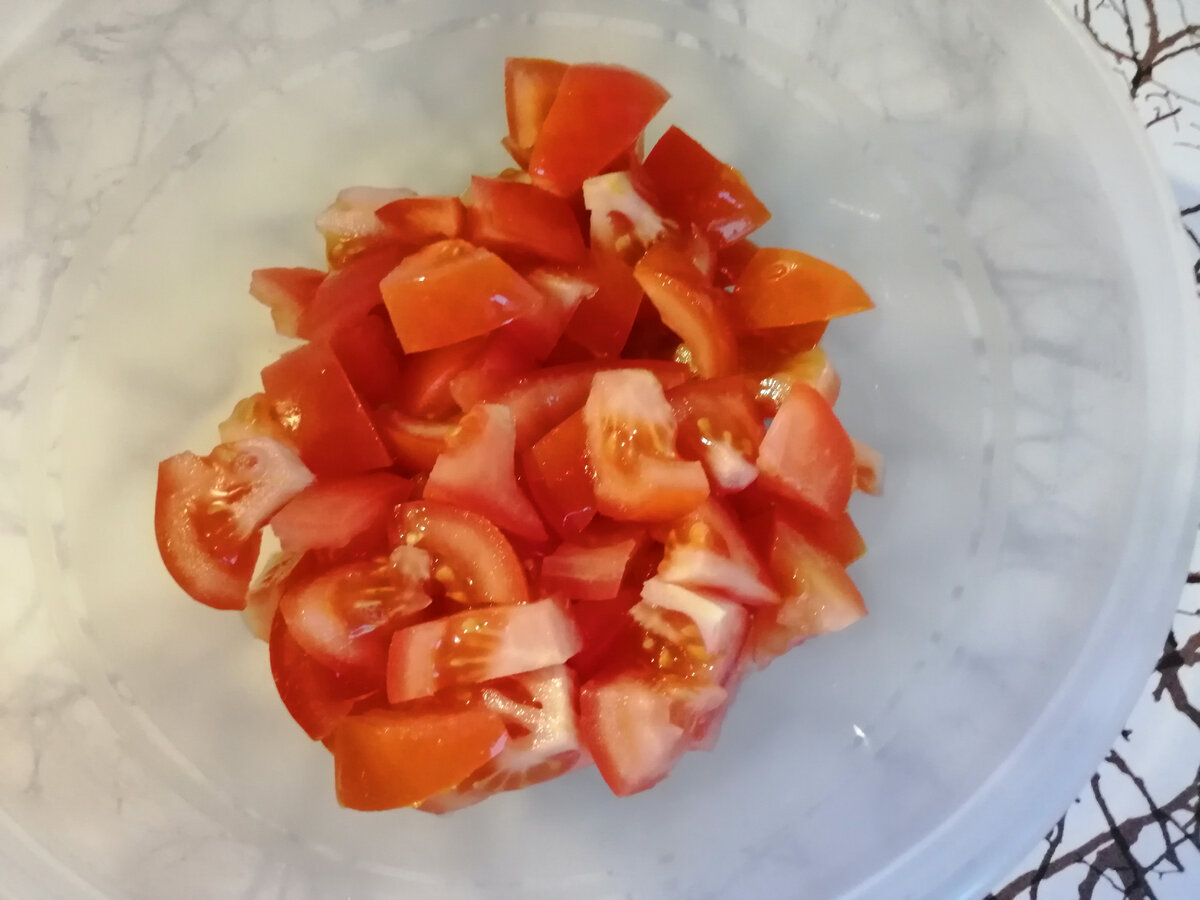 Итак, берём свежие томаты (количество зависит от количества едоков), нарезаем.