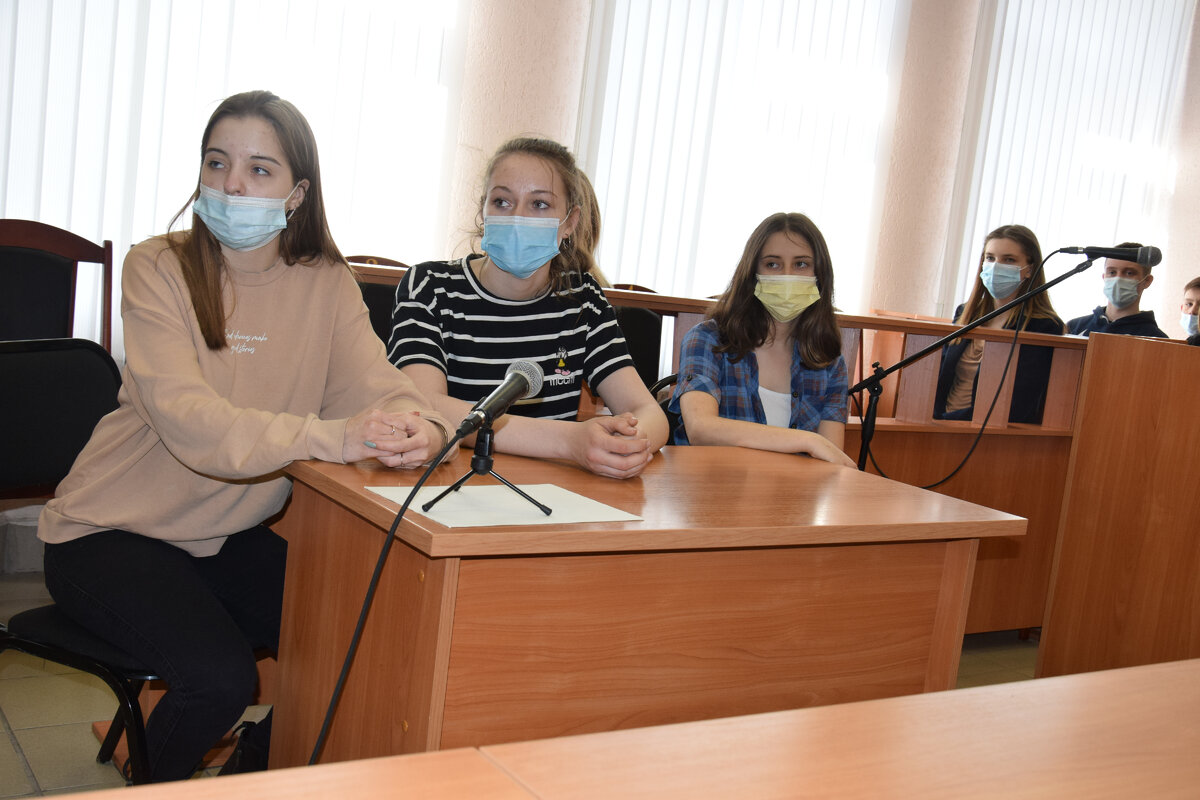 В зале заседаний по уголовным делам Колосовского районного суда, с соблюдением всех необходимых норм, применяемых в период пандемии, разместились 18 десятиклассников. Одна группа ребят заняла место адвоката, другая – присяжных заседателей, третья – обвиняемых и свидетелей, а социальные педагоги Т.С. Сухова и О.А. Долгова - государственных обвинителей.
