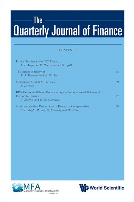 Уважаемые коллеги, доброго времени суток! Представляем вам сингапурское научное издание Quarterly Journal of Finance. Журнал имеет второй квартиль, издается в World Scientific Publishing Co. Pte Ltd., его SJR за 2019 г. равен 0,709, печатный ISSN - 2010-1392, электронный - 2010-1406, предметные области - Стратегия и менеджмент, Финансовый менеджмент, Экономика и эконометрика, Финансы. Вот так выглядит обложка: