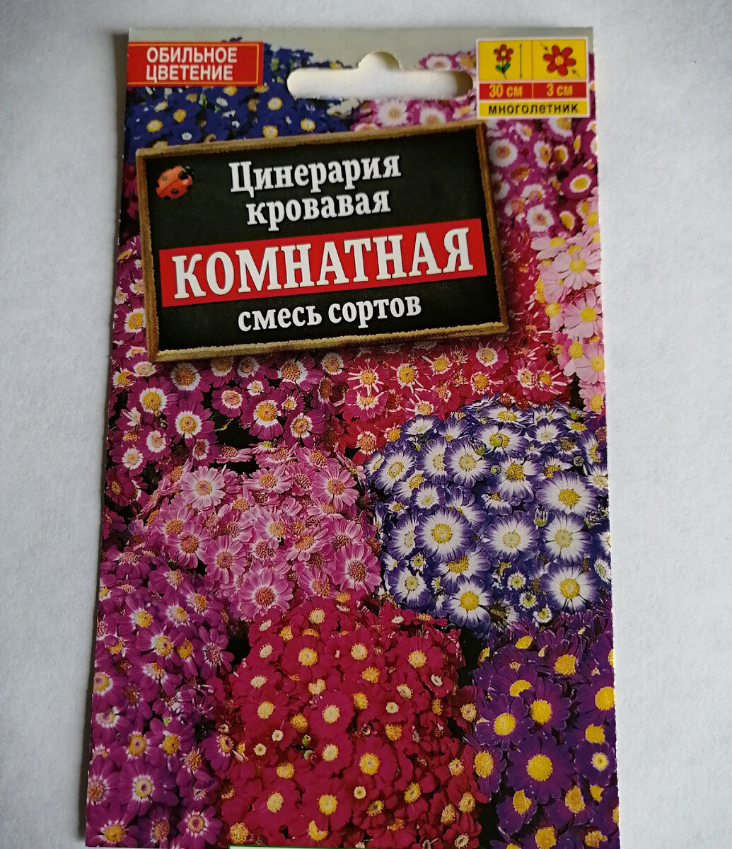 Цинерария кровавая. Надпись с названием фирмы обрезана, но это Аэлита.