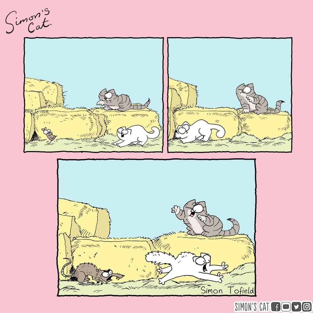 Еще интересный факт, многие ошибочно считают, что Саймон - это имя кота. Однако это не так. Саймон Тофилд - это автор, который делает небольшие зарисовки о своем коте, и потому название у всех его аккаунтов - "Кот Саймона". Как зовут самого хвостатого персонажа - возможно где-то и упоминалось, но я этого не видела и не нашла. Как и второго главного персонажа. Везде значится лишь Котенок.