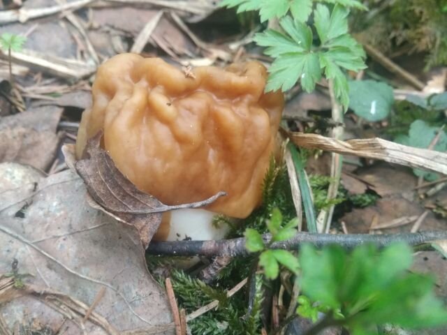 Вылезли из прошлогодних листьев и лежат охряными бугорками на бархатистой подстилке из зеленого