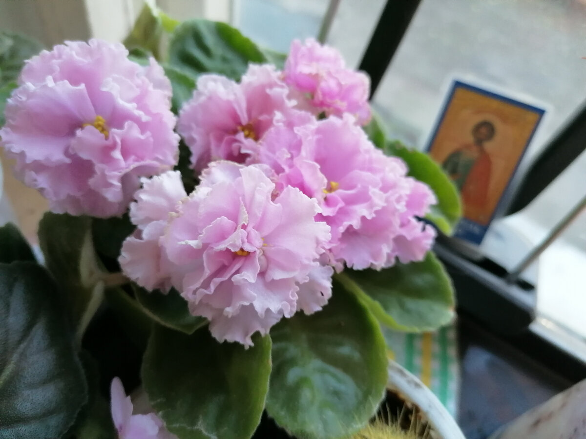 Цветы в моем доме перевелись, так как поселилась белая глухая кошка Мелисса. Она потихоньку их сгрызла. И вот я поставила фиалку на кухню, чтоб сохранить. Поставила на подоконник на подставку. А она возьми, да зацвети. И цветёт, и цветёт. Рассказала Ане. Это говорит у тебя окна на север. Они тень любят. И к какому то празднику принесла мне все