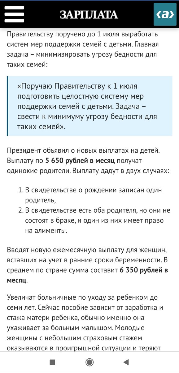 Послушали мы с мужем послание нашего президента, про все выплаты детские