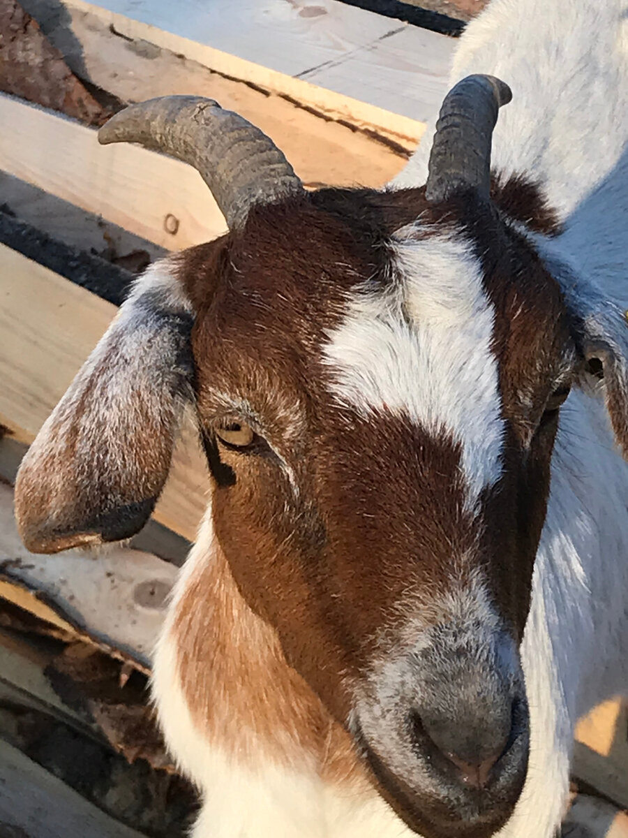 Как часто хочется для души (думали что у коз нет такого в принципе?) чего-то красивого и приятного. Но одно дело пытаться вести племенное хозяйство, совсем другое - вырастить красивых и привлекательных. В большинстве случаев это совсем разные понятия. Сейчас это уже стало понятно, позиция абсолютно четкая - все вновь рожденные мальчики идут в … (на шашлык), а все девчонки, вне зависимости от их природных признаков остаются в стаде. В стаде еще осталось несколько совсем обычных домашних коз, но пока принято решение, что они остаются в хозяйстве на «дожитии», хотя лучше было бы от них избавиться. Только лишняя морока, но рука у Крестьянина не поднимается, хотя он и жалеет об этом очень часто. А теперь про красоту и породу. Повторюсь эти две вещи очень редко идут бок о бок. Бурский стандарт - белое тело, коричневая голова. Но коричневая голова бывает разной от кремовой до практически черной. И всегда радостно встречать на земле нового козленка с такой окраской. А что делать, когда ко