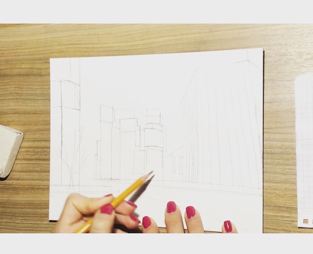 2. Карандашный набросок на холсте. Начинаем переносить наш эскиз на холст, намечая расположение