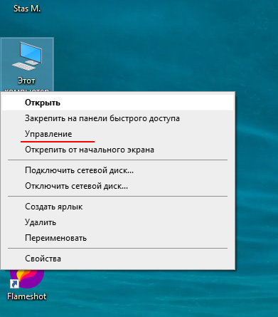 ПКМ на значке "Этот Компьютер" (если нет иконки на рабочем столе или там вынесен ярлык, открываем "Проводник" и находим нужный пункт в левой панели) и выбираем пункт "Управление".