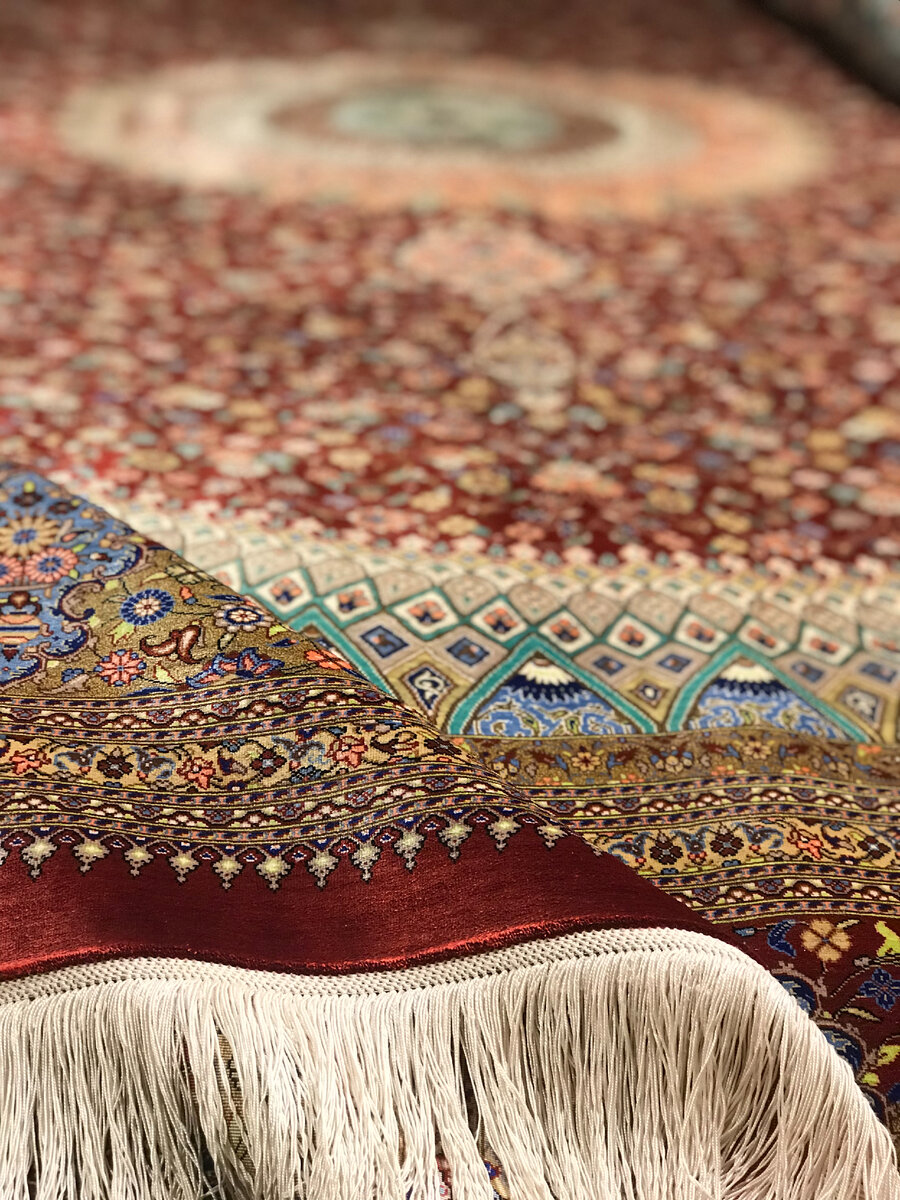 Перелистывание персидских ковров похоже на медитацию. Фактура и узоры ковров завораживают, и полностью поглощают внимание зрителя. Знающие люди говорят, что если долго наблюдать за нашими продавцами, перебирающими ковры, можно впасть в транс. Особенно интересно созерцать ковры, сплетённые из шёлка. Шёлк улавливает малейшие блики света и потому определить истинную цветовую гамму ковра довольно сложно. Созерцая фактуру и узоры ковра, постепенно обходя вокруг него, с каждым шагом открываешь его для себя в новом цвете. Некоторые ковры способны меняться от глянцевого белого до матового бежевого. Эта игра цвета бесподобна. Вы будете особенно очарованы шёлковым ковром в яркий солнечный день и освещённый ночными софитами вечер. Когда любуешься шёлковым ковром, начинает казаться, что он улавливает не только блики света, но и настроение своего хозяина. Он