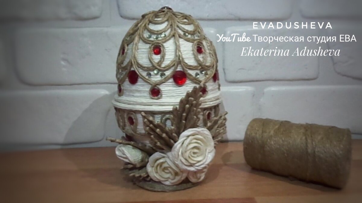 Шкатулка ПАСХАЛЬНОЕ ЯЙЦО "Фаберже" из джута с элементами филиграни/ Своими Руками.