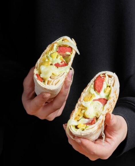Далее собираем шаурму как показано на видео. Шаурму выпекаем 10 минут при температуре 180 градусов и украшаем кунжутом сверху. Кстати, обязательно смажьте противень маслом.