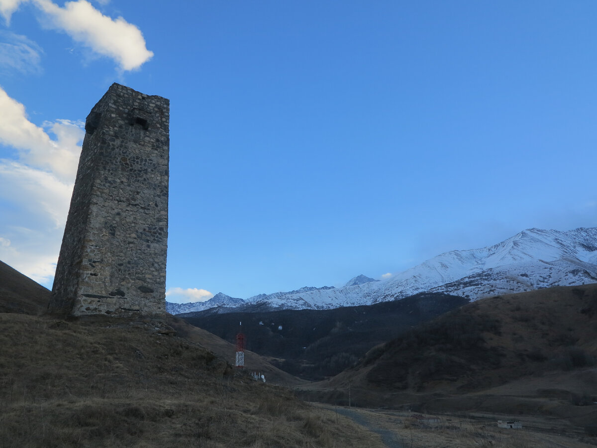 Сначала по крутой извилистой дорожке поднимаемся к сторожевой башне, принадлежавшей древнему осетинскому роду Гутновых . В наши дни башня частично разрушена, когда-то она была выше 6-ти метров.