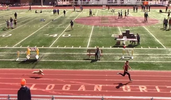 Собака покорила спортивную аудиторию, когда она присоединилась к финишу школьной эстафеты. Зрители не смогли сдержать своего волнения, когда они наблюдали за эстафетной гонкой 4х200 метров на школьном соревновании по легкой атлетике в Юте,США.