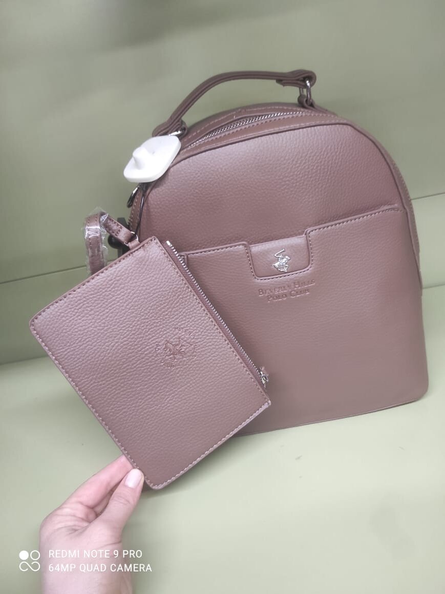 Итак, первый лот на сегодня - рюкзак фирмы Beverly Hills Polo Club. На популярном маркетплейсе стоимость за сумки и рюкзаки данного бренда стартует от 3000 рублей. Все аксессуары (как и этот) выполнены из экокожи. Мне очень понравился цвет данного рюкзака, а также идея с кошелёчком, который выполнен из того же материала, что и сам рюкзак.