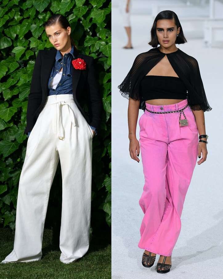 Широкие джинсы который сезон подряд входят в топ трендов. Трубы, бананы, клеш от бедра – все это будет модно и актуально еще как минимум полгода. Особое внимание обратите на