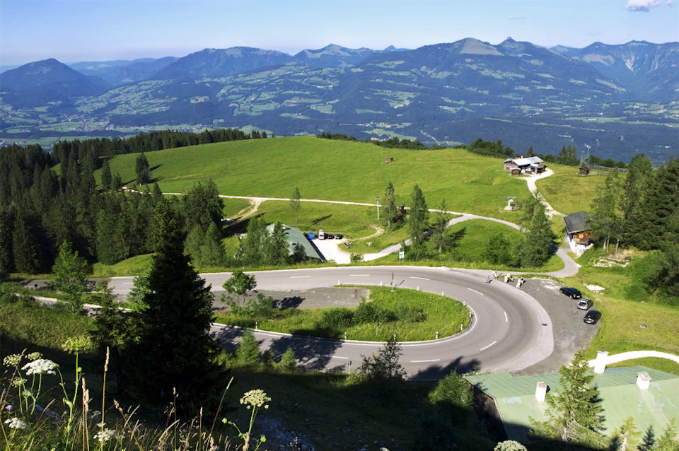 Альпийская панорамная дорога - незабываемые виды ! Панорамная дорога является самой высокогорной дорогой Германии и ведет серпантином на высоту 1570 метров через горы Берхтесгаден. При длине более 15 км она преодолевает перепад высот 1100 метров и предлагает бесподобные обзорные виды в долину Берхтесгаден, на Зальцбург и Австрийские Альпы. В зимний сезон здесь всегда лежит снег, что немаловажно для горнолыжного курорта, и это без снежных пушек! История возникновения Панорамной дороги В 1927 году доктор Кнорц из городка Прин-ам-Кимзее предложил идею соединить Боденское озеро и Кёнигзее, что способствовало бы развитию туризма в регионе. Строительство началось в 1933 году, и уже через шесть лет было проложено 275 километров дороги. Первоначально альпийская дорога должна была закончиться у о. Кёнигзее, но затем решили достроить серпантин Панорамной дороги дальше. В апреле 1937 года началось планирование и строительство, которое, несмотря на 14 мостов и 1,6 километра укреплённых сте