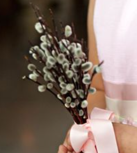 У нас нет пальмовых ветвей, поэтому люди обычно приходят с ветками вербы. Эти освященные ветки вербы потом целый год хранят дома, украшают ими иконы…