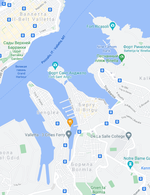 Витториоза — Биргу и Сенглея — Исла занимают два полуострова, выдающихся в море, разделены друг от друга и от Валетты заливом, а Коспикуа — Бормла расположена между ними «на материковой части».