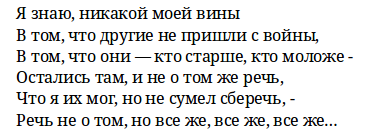 "Я знаю, никакой моей вины..." — довольно нетипичное стихотворение о Великой Отечественной войне. Короткое, несколько строчек. Сильное, как молитва и исповедь. Один раз прочитав, забыть пронзительное многоточие невозможно. В советское время стихотворение не особенно-то продвигали. Возможно, оно казалось упадническим. Не было в нём того казённого оптимизма, от которого Твардовский отказался ещё в годы войны и сторонился позже. Стихотворение было написано в 1966 году. Оно выразило состояние поэта — горечь, болезненные воспоминания, сожаления. Твардовский долгие годы мучился чувством вины перед погибшими на войне, военная тема его не отпускала. Александр Твардовский был на фронте военным корреспондентом. В самом начале войны его откомандировали "литератором газеты Киевского Особого военного округа". Конечно, он рвался воевать с оружием в руках, но так и не получил разрешения. Много ездил по передовой, писал стихи и очерки. В 1944 году закончил работу над поэмой "Василий Тёркин", настоящим
