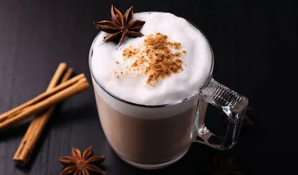 После легкого запаривания взбейте верх с помощью вспенивателя молока или взбивания, чтобы образовалась пена. Процедите чай между четырьмя кружками или термостойкими стаканами, затем влейте молоко, удерживая пену. Перемешайте. Сверху на каждый латте добавьте немного молочной пены, затем посыпьте щепоткой корицы.
