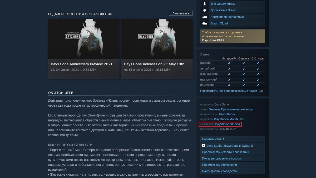 На это обратил внимание пользователь Reddit под ником SulyvahnThe2nd, обнаруживший, что на страницах Horizon: Zero Dawn - Complete Edition и Days Gone в Steam появилась ссылка,