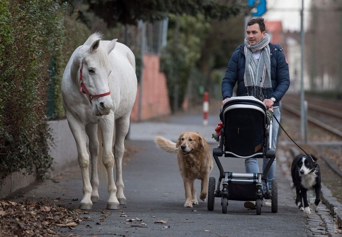 Каждое утро во Франкфурте-на-Майне на прогулку выходит серая лошадь по имени Дженни.