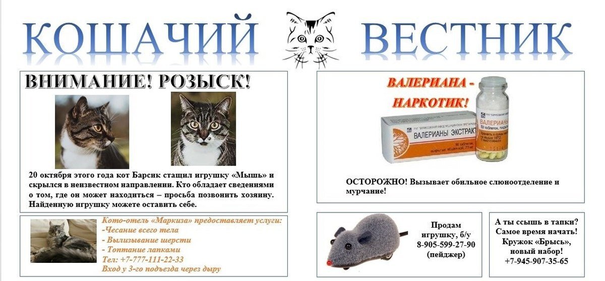 Привет! Вот знаете, иногда так получается я не могу написать статью потому что очень увлёкся чтением. Вы спросите, каким, таким чтением? Вы что классику читаете? Ну знаете, у каждых котов по-своему. Некоторые запрыгивают вам на плечо, и читают вместе с вами. (Да да, а вы что думали?) Некоторые пока вы на работе, читают ваши книги. А некоторые... читают "Кошачий вестник" В электронной и бумажной