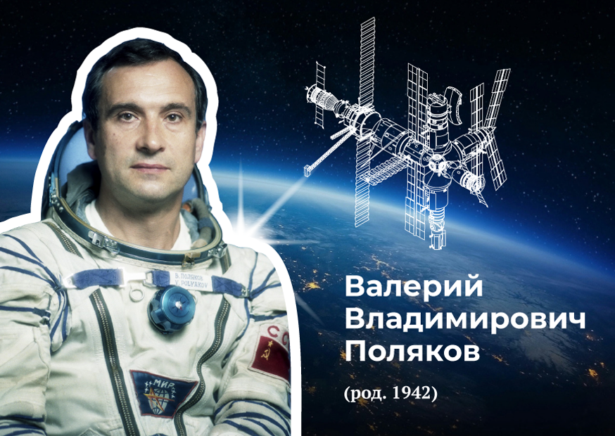 Валерий Владимирович Поляков вошел в историю освоения космоса как 66-й космонавт СССР и России, 210-й космонавт мира. Он является обладателем мирового рекорда самого длительного полёта в космос. Профессиональный путь в космическое пространство начался для него после окончания в 1965 году Первого Московского медицинского института, в котором он специализировался на проблемах тропических болезней. В 1969 году Валерий Владимирович подал заявление о включении его в состав отряда космонавтов, однако полет стал возможным лишь через два десятилетия. Перед тем, как подняться не только к высотам космическим, но и карьерным, В.В.Поляков работал референтом, а также врачом неотложной скорой помощи. Для становления в качестве специалиста он прошел клиническую ординатуру Института медицинской паразитологии и тропической медицины, аспирантуру Института медико-биологических наук и получил кандидатскую степень в 1976 году. В августе 1988 года В.В.Поляков отправился в первый, 240-суточный полет в космос, а в январе 1994 года начался его рекордный 437-суточный полет. Это были сложные периоды испытаний, в первую очередь, себя, но были и внештатные ситуации, такие, как возгорание генератора, которое удалось благополучно потушить. Во время полетов Валерий Владимирович проводил важные эксперименты, изучая влияние космоса на организм человека. Материалы его научной работы были изложены в многочисленных публикациях в отечественных и зарубежных изданиях, легли в основу докторской диссертации. В.В.Поляков принимал участие в крупных международных проектах, в частности, эксперименте SFINCSS, в ходе которого проводилась имитация полёта международного экипажа на космической станции для изучения взаимодействия групп людей разных национальностей.