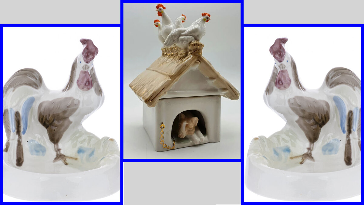 Это статуэтка конца 50-х годов имеет совсем небольшие габариты: 13 см * 13 см * 20 см и около 500 грамм «живого веса». Производились такие петушки на Городницком фарфоровом заводе и были довольно распространены в домах советских людей.