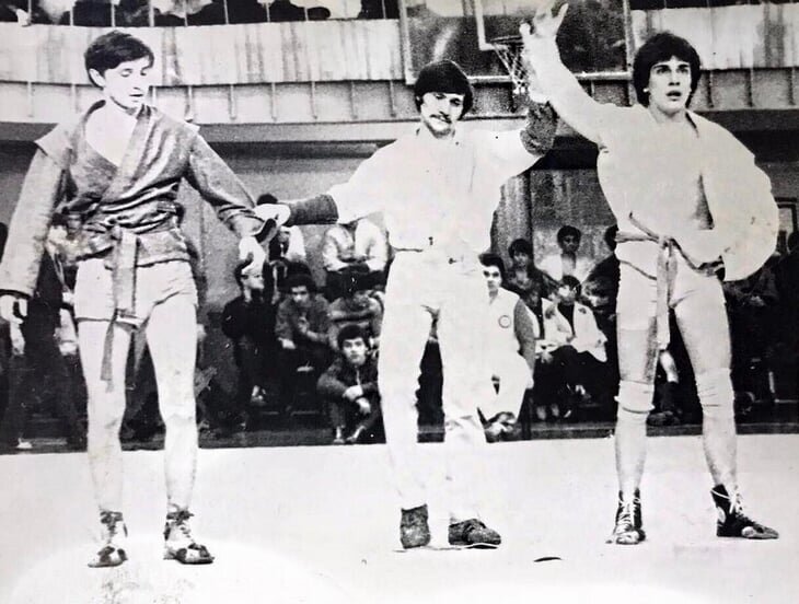 На фото ниже – Нагиев, которого вы не застали на ТВ (и вряд ли узнаете): до армии, до актерской карьеры, с волосами. Это один из победных турниров по самбо, Дмитрий (справа) выкладывал фото в инстаграме в 2017-м.