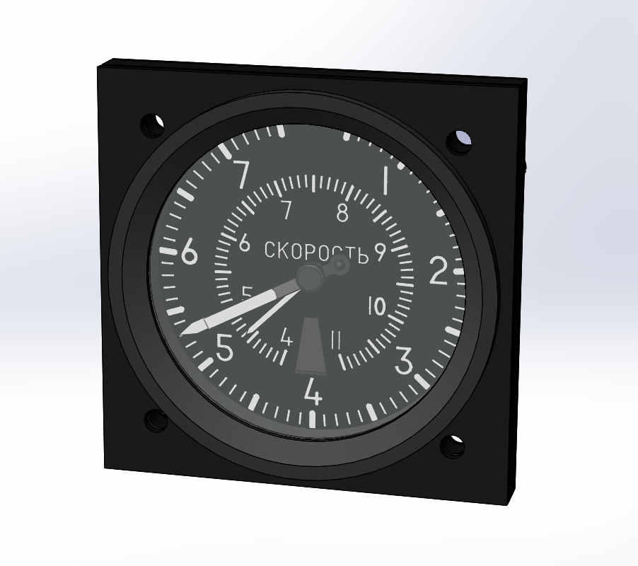 Принцип действия основан на измерении скоростного напора встречного потока воздуха с автоматическим введением поправки на плотность и сжимаемость воздуха в зависимости от высоты полета. Внешняя шкала приборной скорости от 50 до 750км/ч., а внутренняя шкала истинной воздушной скорости от 400 до 1100км/ч.