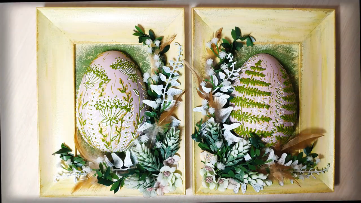 Здравствуйте, дорогие друзья и гости канала Семейный handmade. Сегодня необычный мастер-класс, потому что в процессе работы я скорее хочу показать вам как можно методом окрашивания состарить обычные фоторамки и сделать очень нежную роспись яиц контурами. То, что в итоге получилось два пасхальных панно в стиле шебби-шик скорее приятное дополнение, а вовсе не изначальная цель. Приступим к работе! Для начала нам понадобятся рамочки и в идеале они должны быть широким профилем. Свои я купила Фикс Прайсе. У меня они серебряного цвета и это скорее плюс, чем минус, потому что темная подложка добавит старины нашим панно. Убираем из рамочек задник и раскрашиваем их в нежно жёлтый цвет. У меня цвет акриловой краски называется Неаполитанская жёлтая. Раскрашивать старайтесь по направлению профиля, то есть вертикальные части рамки раскрашиваем вертикальными мазками, а горизонтальные - горизонтальными. Я раскрасила рамки в два слоя с промежуточной просушкой. Не старайтесь добиться равномерного покрыт