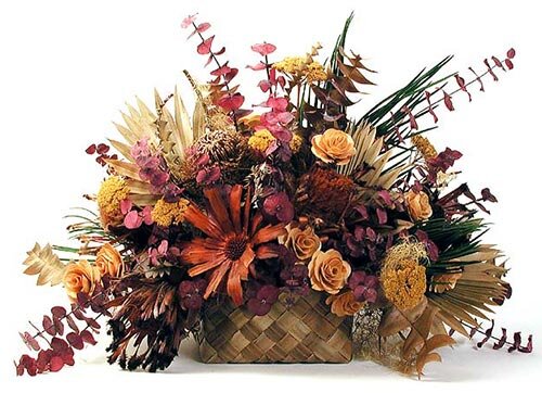 Из неживых цветов приемлемы в квартире букеты из сухоцветов. Своими руками выращенные растения, из вашего личного сада, внешне они почти такие же, какие были летом. Как сохранить тот момент, когда в них прекратилась жизнь? А может, она и всю зиму не прекращается, просто настолько постепенно замедляются все процессы жизнедеятельности, что ни питание, ни воды им уже становится не нужно. А вот энергия в клеточках еще осталась, она как бы законсервировалась. Значит, такой букетик не просто стоит без пользы, а одаривает нас своей энергией. А какие воспоминания навеваются при случайном взгляде не эти нехитрые цветочки! Они ведь все лето росли тем, у крылечка. Сотни раз вы проходили мимо них, улыбались им, замечали, как они подрастают каждый день хоть на чуточку. Это вы дали им жизнь, пробудили из семени, нянчили и кормили своими руками. Эти цветочки были свидетелями ваших радостей, а может когда-то и развеяли вашу печаль, цветы ведь это умеют. Да разве можно сравнивать этот скромный букетик с цветной заморской тряпочкой или пластмассой?