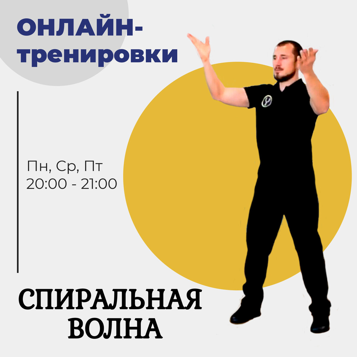 Вечернюю тренировку, в 20:00 по киевскому времени, проводит Виталий Присяжнюк — двигательная медитация в спиральной волне. Вечерняя медитация длится 1 час.