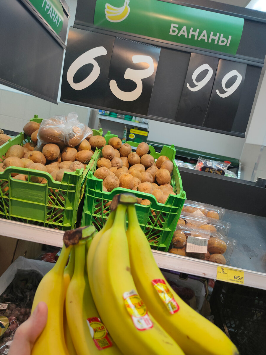 Бананы стоят 64 рубля за килограмм.