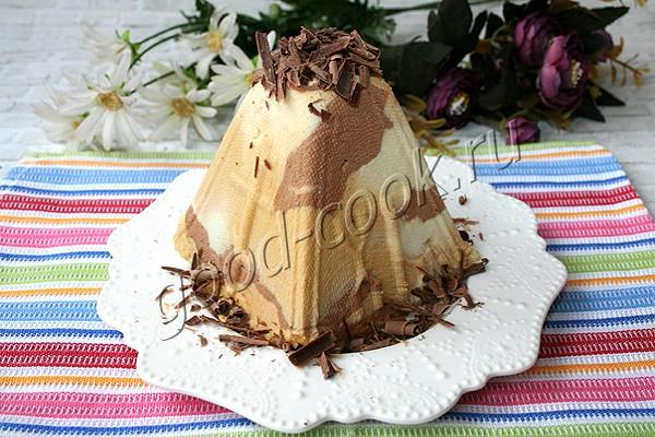 Как и у всех творожных пасох у этого праздничного десерта очень приятный вкус и густая мажущая консистенция. В пасхе сочетаются три цвета и три вкуса - шоколад, карамель и простой творог. Каждая часть отличается от других, но вместе они очень гармоничны.