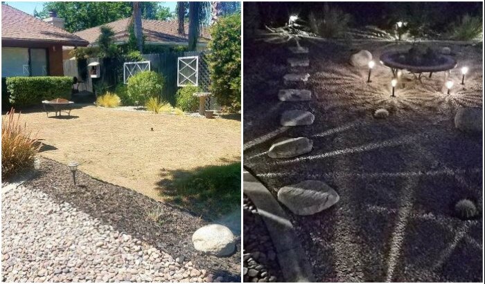 Владельцы частных домов всегда стараются привести двор в порядок, чтобы было приятно в нем отдыхать или работать на свежем воздухе. Особо творческие энтузиасты умудряются на подворье устраивать экзотические композиции или арт-объекты, которые им приносят удовольствие, а у соседей вызывают зависть. Так, например, владельцы скучного двора в Южной Калифорнии наконец-то нашли время на его преображение. Всего лишь за 8 часов задний двор превратился в место, которое в темное время суток превращается в сказку.