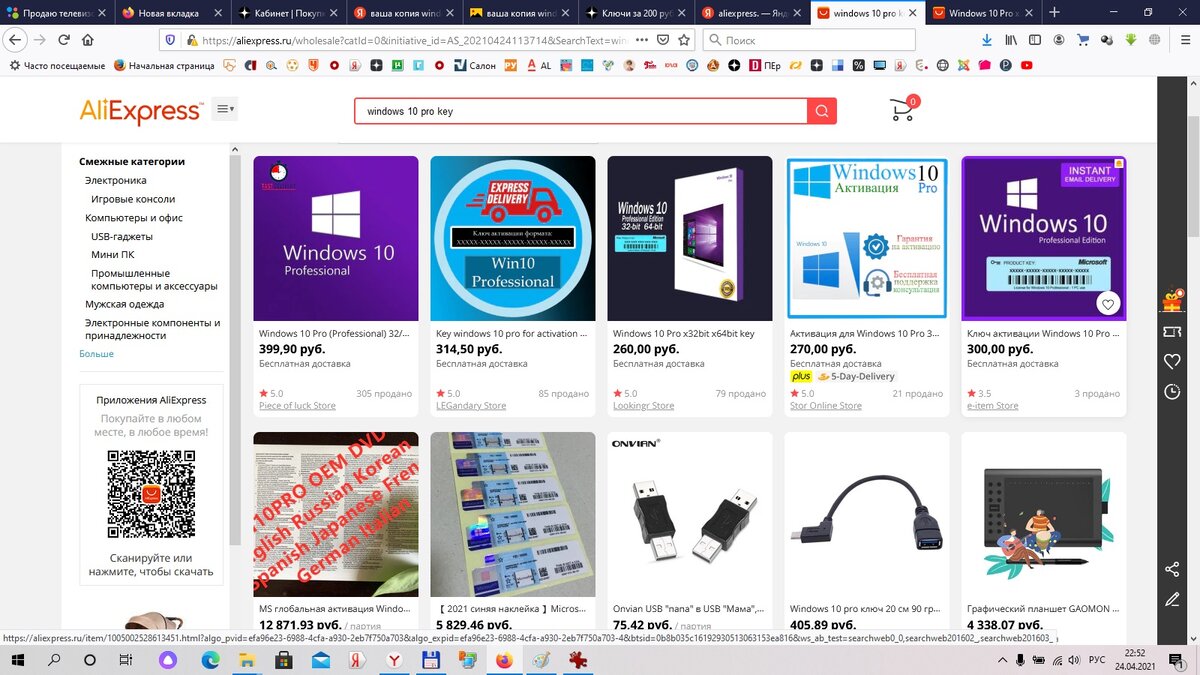 Если мы зайдем на aliexpress.ru и напишем в поиске приобрести ключ для windows 10 , то поисковая система сайта выдаст нам в результатах поиска сотни вариантов покупки ключей для Активации Windows 10.