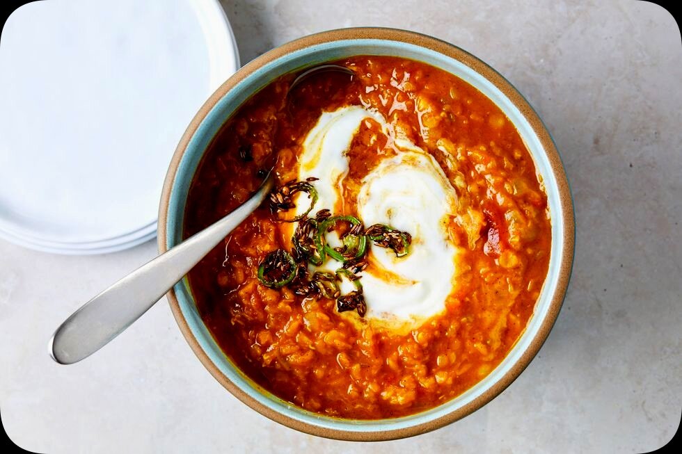 Этот легкий рецепт чечевичного даля действительно приносит тебе тепло. Дал-это индийское блюдо, и термин дал относится как к этому супообразному блюду, так и к слову, обозначающему расщепленную чечевицу. Красная чечевица, используемая здесь, распространена в далсе, потому что она не требует предварительного замачивания и быстро готовится. Их тушат в томатном бульоне с большим количеством теплых, жирных специй. Это удивительно сытное блюдо, которое отлично подходит для холодной зимней ночи и когда у вас не так много времени на приготовление. Пряное масло, которое сбрызгивается сверху, необязательно, но очень рекомендуется. Йогурт поможет сбалансировать остроту и кислотность блюда. Сметана - отличный заменитель.