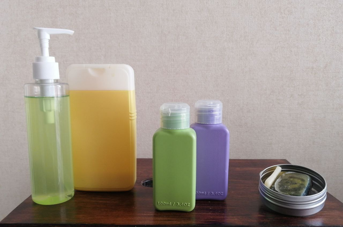 Нет никакой необходимости таскать с собой полные бутыли шампуней, кондиционеров и гелей для душа - вы всё равно столько не истратите. Все жидкости и гели лучше переливать в маленькие ёмкости. Найти их можно в хозяйственных магазинах, в магазинах косметики, в супермаркетах, а также под это можно приспособить пустые бутыльки, которые у вас остались от других средств. Я свои покупала в Икее несколько лет назад, и пользуюсь ими постоянно и не только в поездках: например, сейчас в одной из них у меня находится жидкий антисептик, который я ежедневно таскаю с собой.