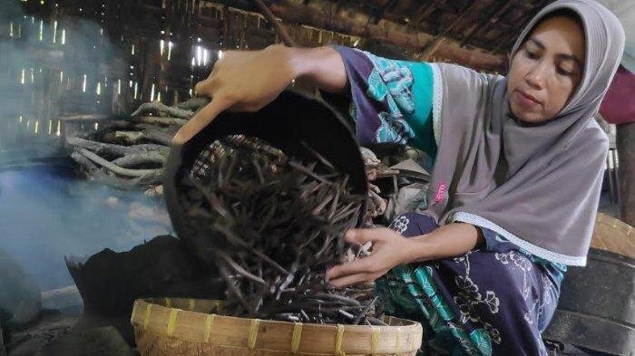 Потом добытую глину кидают в котел и обжаривают до корочки, точнее сушат до такого состояния, чтобы хрустел
