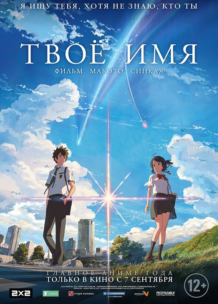 Аниме «Твое имя» имел грандиозный коммерческий успех в Японии. В прокате лента заработала около 23 миллиардов йен (190 миллионов долларов), став второй в списке самых кассовых картин Японии после «Унесенных призраками».