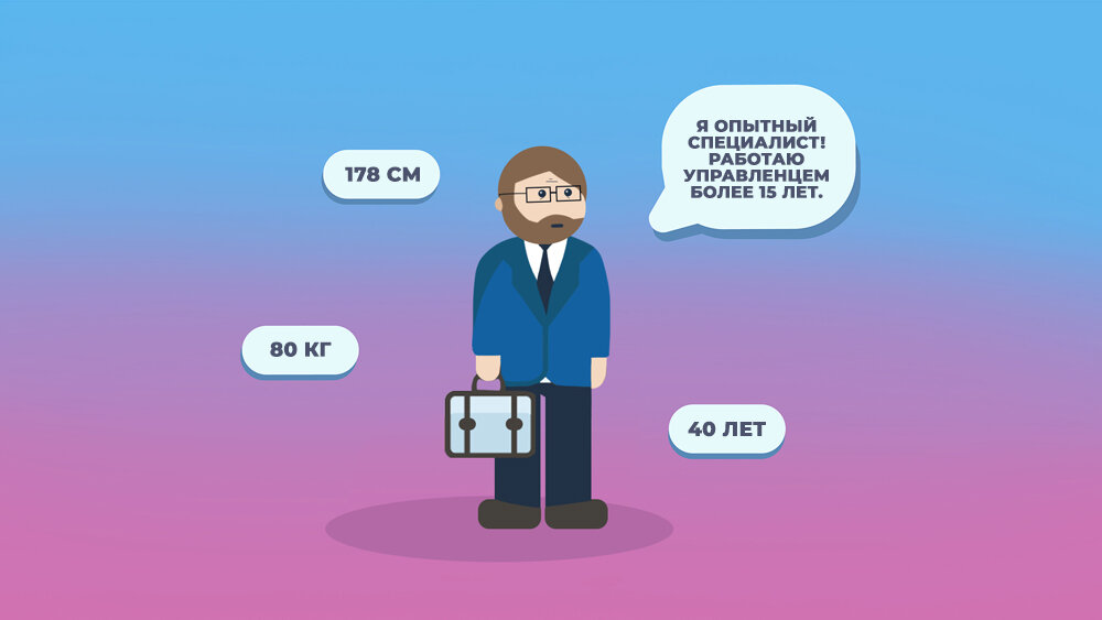 Это мужчина, ему около 40 лет. Конечно, он имеет оконченное высшее образование. А профессиональный опыт в сфере управления — свыше 15 лет. Если добавить