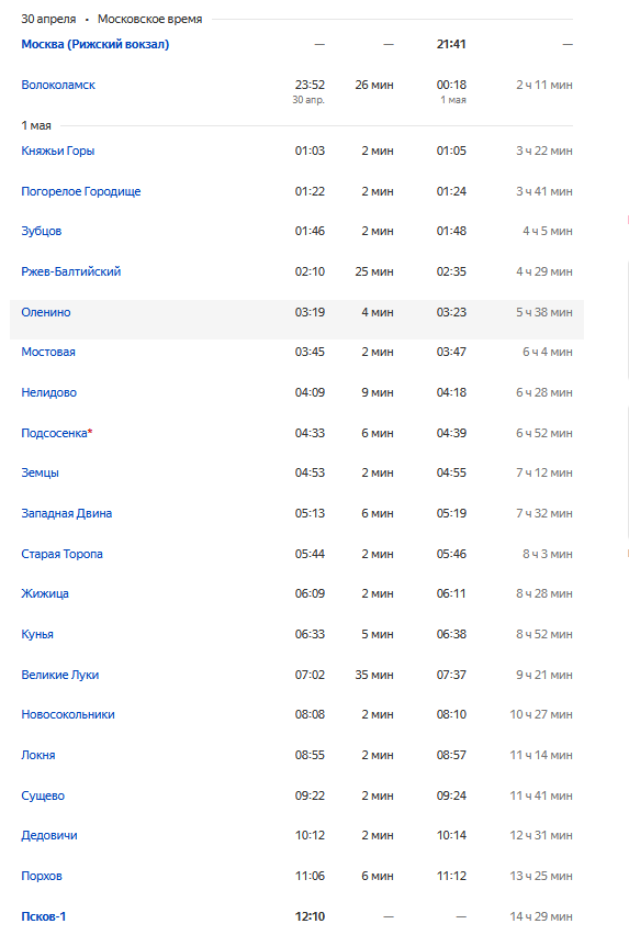 Я рекомендую для поездки туда воспользоваться именно вторым поездом. Отходит он от Рижского вокзала в 21-41, а приходит во Псков в 12-10.