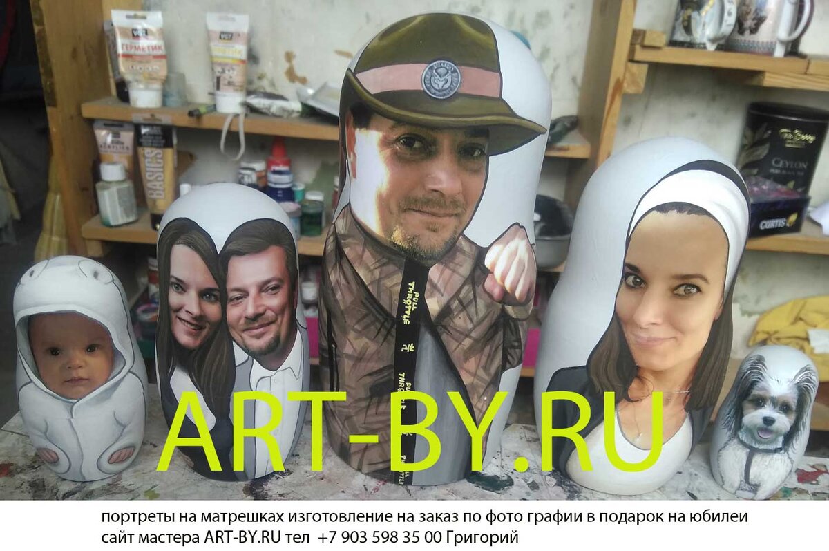 Безусловно годовщина деревянной свадьбы это первая круглая годовщина в жизни молодых и не отметить ее подарком просто невозможно, я предлагаю как подарок на это торжество деревянные русские матрешки с семейным портретом, портреты могут быть как рисованные так и фото печать, на этих фото я представил одну изх таких работ , тут портреты именно фото печать, думаю подарок на годовщину свадьбы 5 лет удался на первой кукле матрешки высотой 20 сантиметров фото портрет мужа, потом супруга, потом супруги вместе, затем маленький сын, любимая собака семьи, всего пять кукол поместил видео с еще одной матрешкой в подарок любимому мужу, тут все портреты рисованные и решили нарисовать семью как королевская семья, муж царь, супруга царица и дочери и сын принц и принцессы та же подарочная портретная матрешка изготовленая на годовщину свадьбы 5 лет вместе, но с другого ракурса фото портрет мужа, союственно именно ему эта подарочная матрешка и изготовлена в подарок, три фото с трех разных сторон, супруг