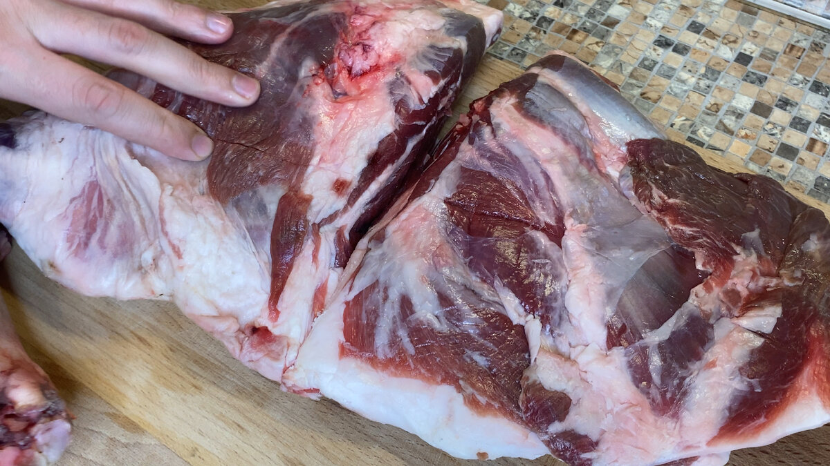 Для начала давайте займемся мясом. Я взял баранью лопатку. Снимем мясо с кости и ОБЯЗАТЕЛЬНО сохраним весь жирок.