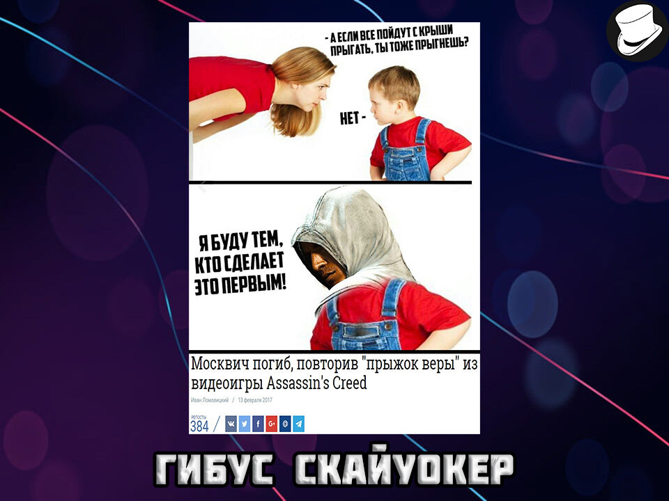 Добро пожаловать! Добро пожаловать на 21-тую подборку игровых мемов! Сами вы ее выбрали или ее выбрали за вас, это лучшая подборка из оставшихся. Я такого высокого мнения о своих подборках, что разместил свое правительство здесь, на канале, столь заботливо предоставленный нашими покровителями. Итак, собираетесь ли вы остаться здесь, или же вас ждут неизвестные дали, добро пожаловать на эту подборку. Здесь интересно. Я начал активно играть в кс го, и в каждой второй катке мне попадаются куча читеров. Я еще каким то образом умудряюсь их убивать. Никогда за всю жизнь столько читеров не видел, сколько за последние 2 дня. Но в основном они попадаются в моей тиме, поэтому проблема не такая большая. 1. 2. 3. + еще 1 стрела в колено 4. 5. 6. 7. 8. 9. 10. Ну а на этом у меня все Надеюсь что хоть какой-нибудь мем вас порадовал, или заставил улыбнуться. Если это так, то это круто, это все что мне было нужно) Если вам понравилась эта подборка, то можете поставить лайк и п