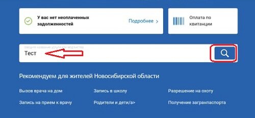 Можно найти услугу самостоятельно, указав в строке поиска «Тест».