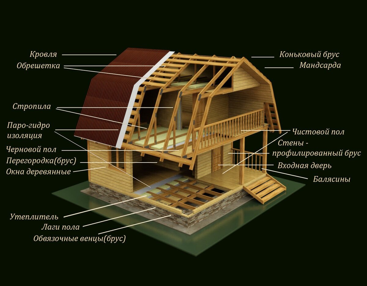 Каркасы из клееных балок и колонн, соединенных металлическими соединителями, могут иметь длину от 30 до 35 метров (от 100 до 115 футов). Тяжелый настил из досок с пазом и пазом толщиной до 9,4 см (3,75 дюйма) используется для перекрытия балок для поддержки полов и крыш.