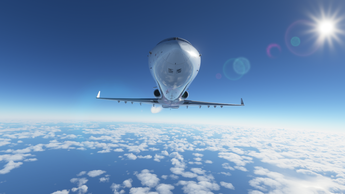 - отдельный платный самолет CRJ 550/700 от студии Aerosoft. Неплохая визуальная проработка освещения и текстур кабины, внешних текстур, есть анимация открытия дверей и багажников. Но проработка внешнего освещения звуковых эффектов хуже, чем у А32NX: стробы еле заметны, а двигателей на эшелоне вообще почти не слышно из-за ветра. Но зато у CRJ есть огромный плюс - это оповещения от бортпроводников информирующих пассажиров о разных этапах полёта.